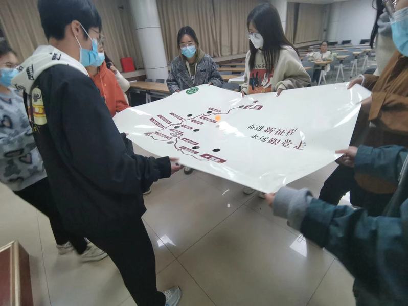 会议分为理论学习、知识问答、“重走长征路”、重温入党誓词四部分。首先,与会党员集中学习《二十大报告解读丨非凡成就 伟大变革》一文,聚焦过去五年工作和新时代十年的伟大变革,引导青年党员树立甘于奉献、勇于担当的责任感,牢固树立党员意识。知识问答环节中,每位党员都积极思考、踊跃发言,达到了以赛促学的目的。在“重走长征路”活动中,党员们相互协作、团结一致,检验了党员对党的二十大报告的阶段性学习成果。随后,支部副书记任泓旭带领全体党员一起重温入党誓词,回忆入党时的铮铮誓言,坚定理想信念。活动结束后,大家纷纷就如何在新时代发扬青春力量表明观点,立志做时代大任的担当者,肩负历史使命,为实现中华民族伟大复兴而不懈努力。