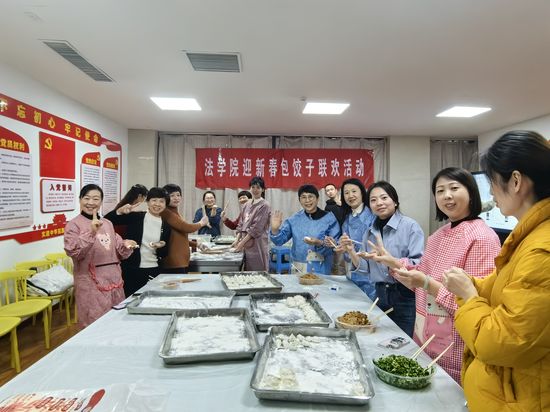 为迎接新年到来,丰富教职工的业余生活,12月29日晚,法学院分工会举行“迎新春· 包饺子”联欢活动,全体教职工欢聚一堂,共同庆祝新年的到来。
